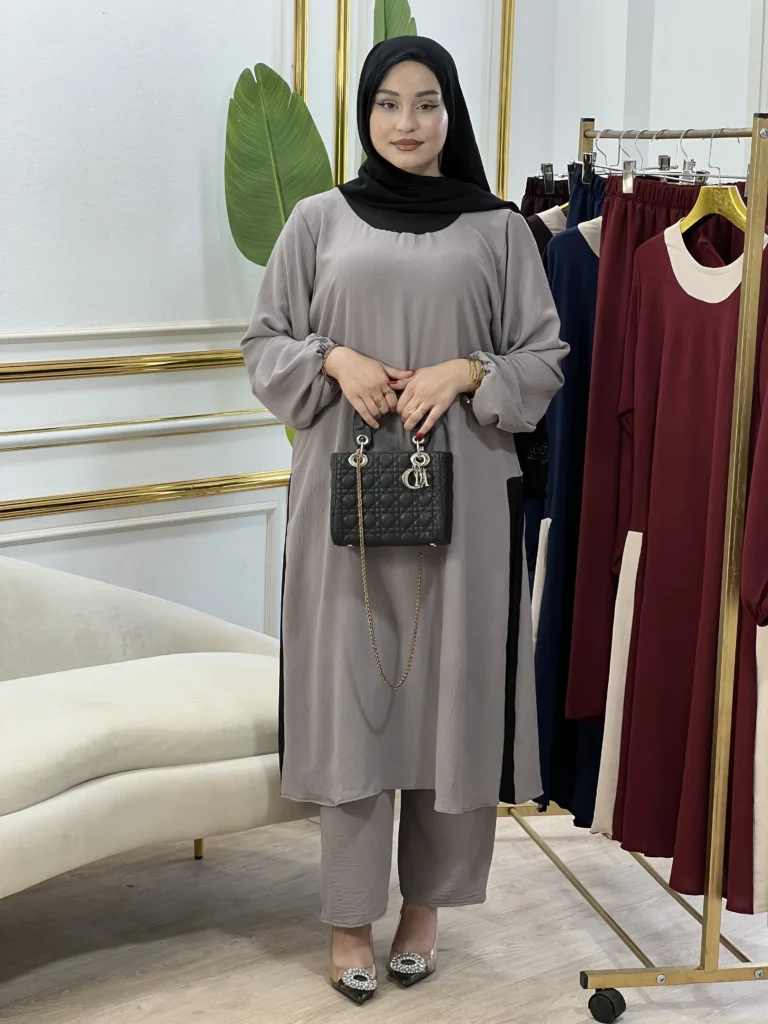 لأنه زي متكامل (سروال + ايكات) يجمع بين الاحتشام والأناقة، صمم خصيصًا للمعلمات، الموظفات، أو أي امرأة تبحث عن إطلالة عملية للعمل أو الخروجات دون عناء التنسيق!