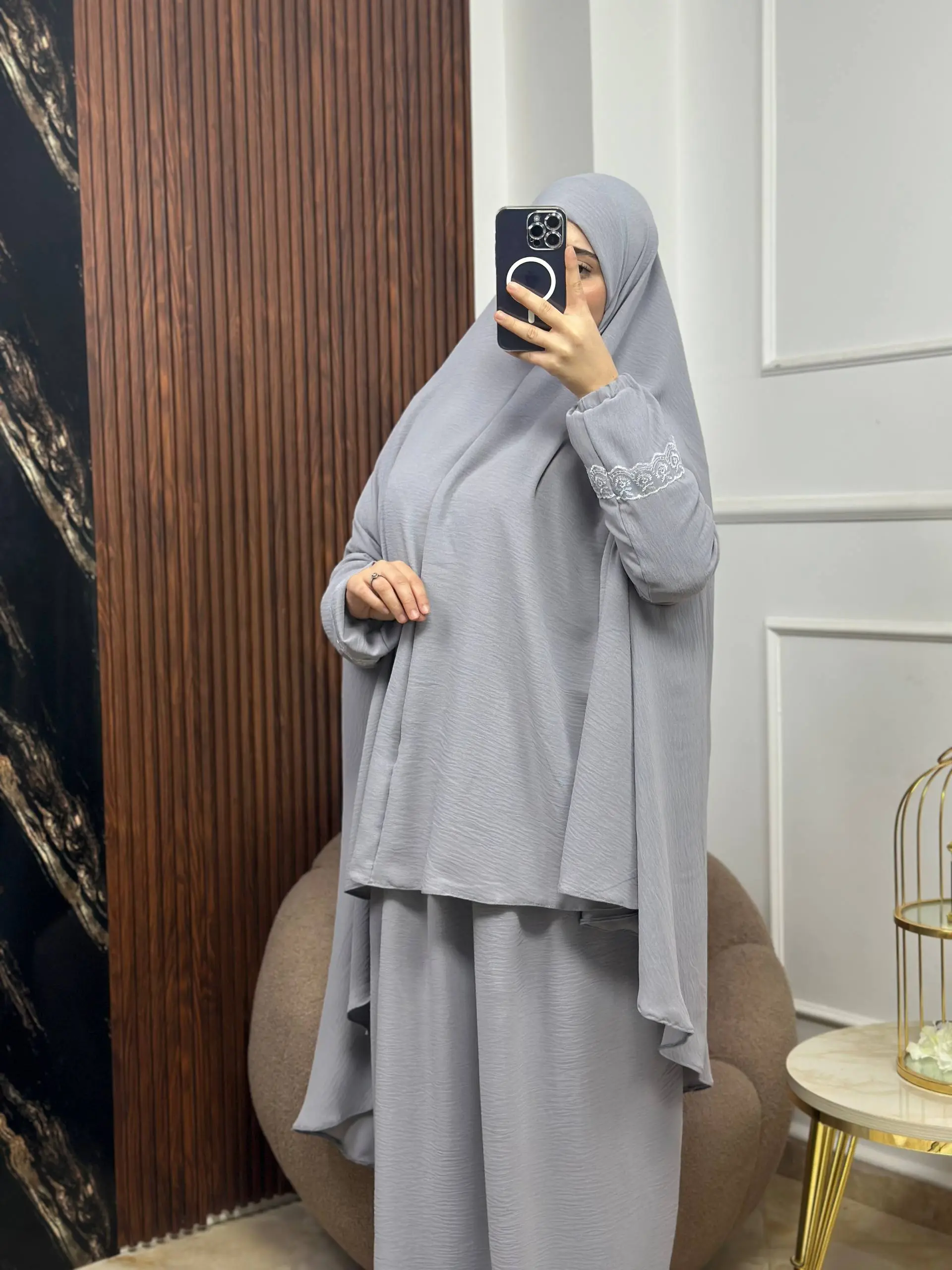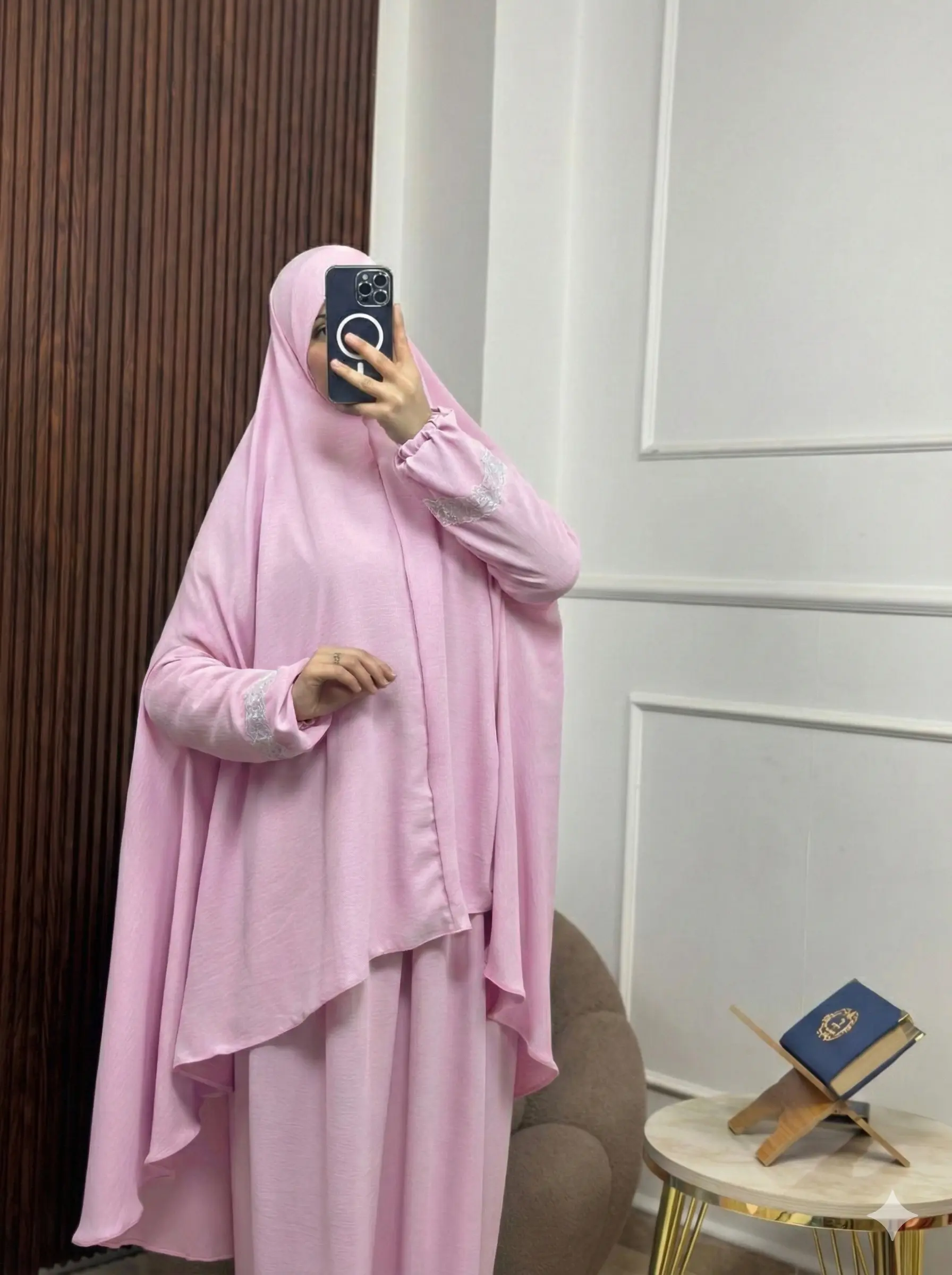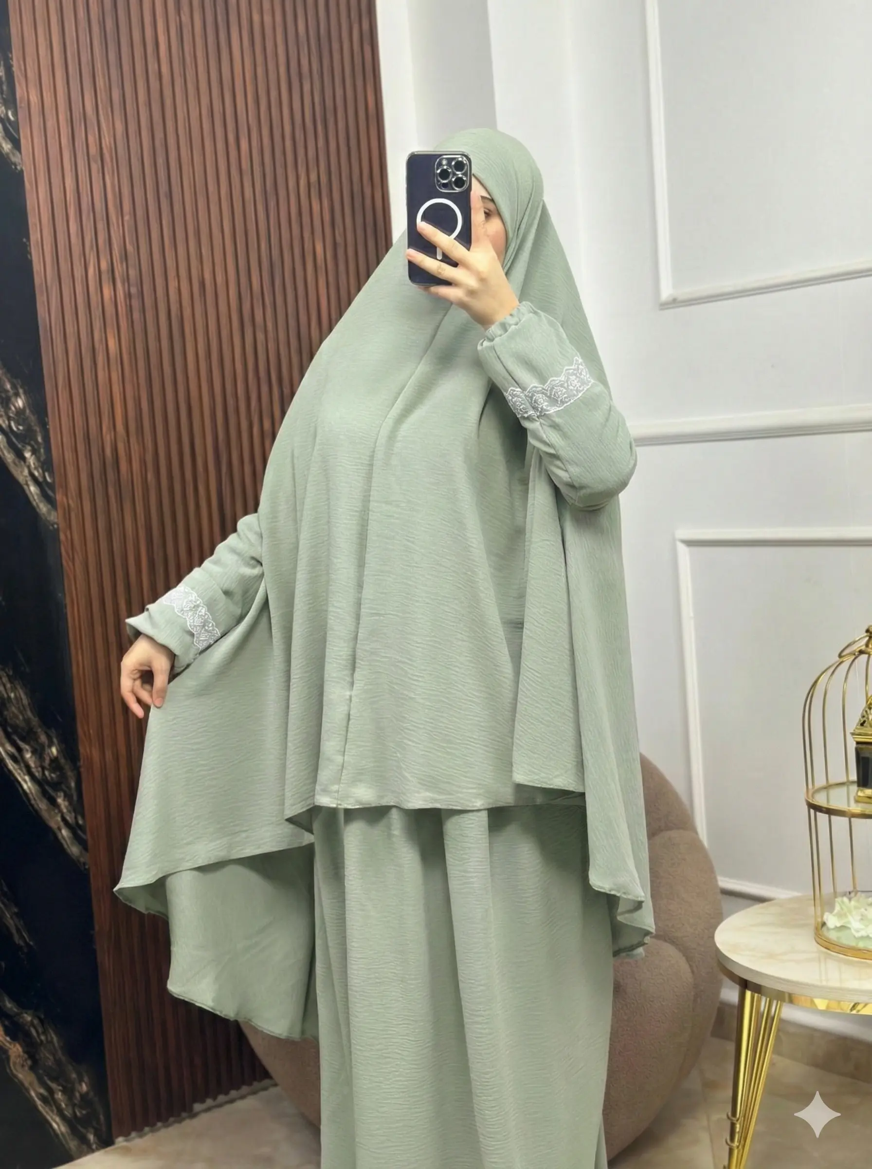 ابحثي عن الإحساس بالاستثنائية؟ إسدالتنا المصنوع من قماش كراب فرواصي هو اختيارك المثالي الذي يجمع بين الأناقة والراحة المطلقة. تم تصميمه ليصبح الجزء المفضل في خزانتك، سواء للصلاة أو للخروج في مناسباتك اليومية.